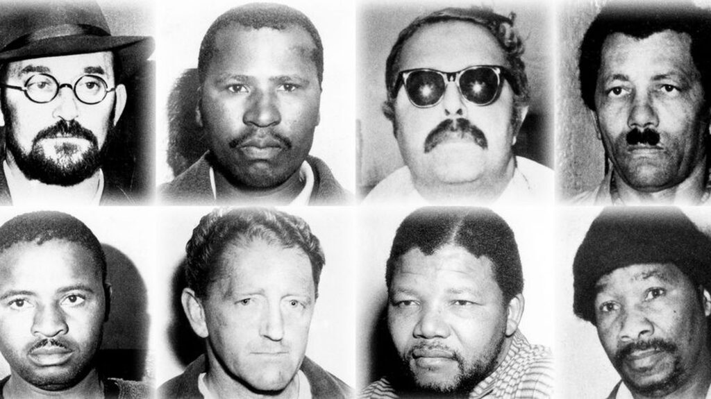 Dans le box des accusés : les principaux leaders de la résistance clandestine anti-apartheid dont, notamment, Nelson Mandela et Walter Sisulu. Principal inculpé de ce procès, Mandela s’y défendra lui-même. Il conclura sa plaidoirie par des mots qui feront le tour du monde : « Toute ma vie, j’ai lutté pour la cause du peuple africain. J’ai combattu la domination blanche et j’ai combattu la domination noire. J’ai adopté pour idéal une société démocratique et libre où tout le monde vivrait ensemble dans la paix et avec des chances égales. J’espère vivre pour le conquérir, mais c’est aussi un idéal pour lequel je suis prêt, s’il le faut, à mourir. »