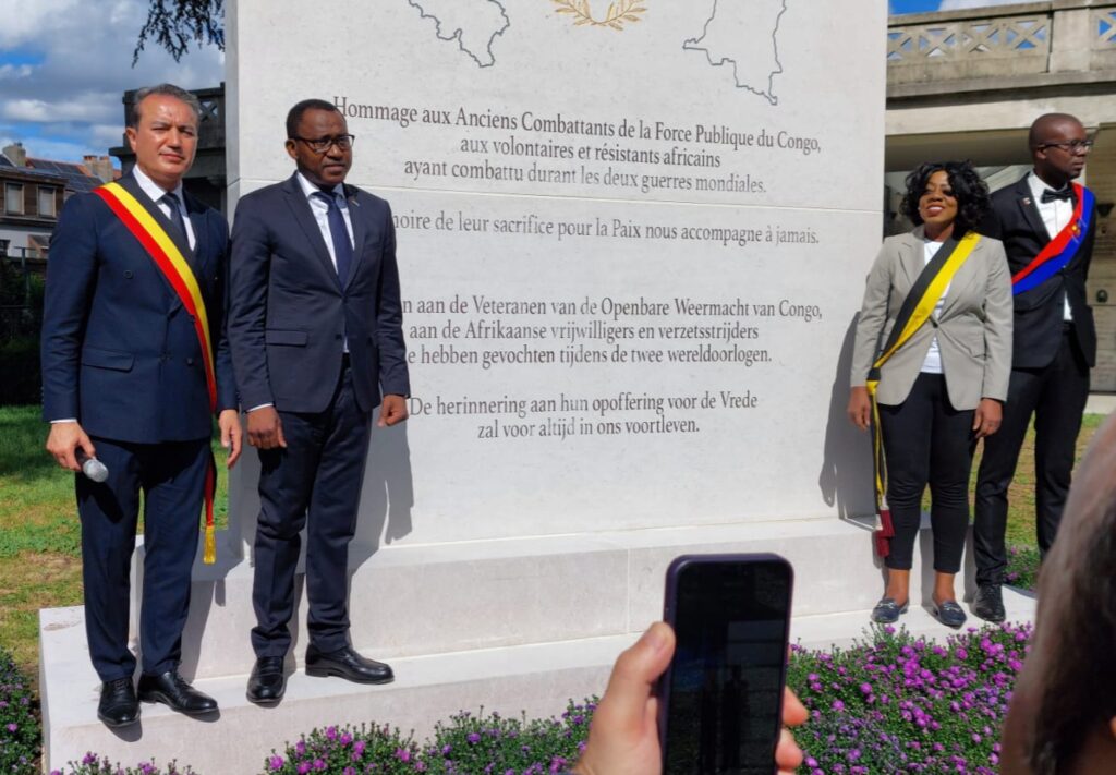 À Bruxelles, une stèle en hommage aux anciens combattants de la Force publique du Congo ainsi qu’aux volontaires et résistants africains ayant combattu durant les deux guerres mondiales a été inaugurée le 8 août au cimetière de la commune de Saint-Josse-Ten-Noode, en présence de l’ambassadeur de la RDC au Benelux, Christian Ndongala Nkuku, du bourgmestre Emir Kir et de l’échevine aux Relations internationales Dorah Ilunga.